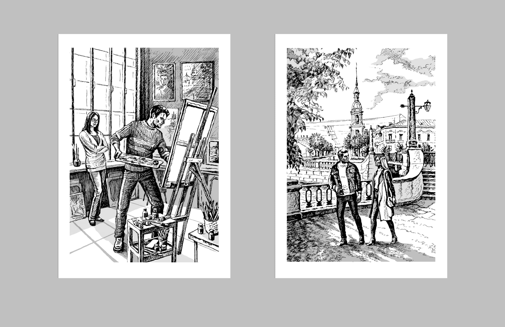 Были созданы 4 полосные иллюстрации, относящиеся к основным эпизодам книги. Иллюстрации выполнены вручную в авторской технике.